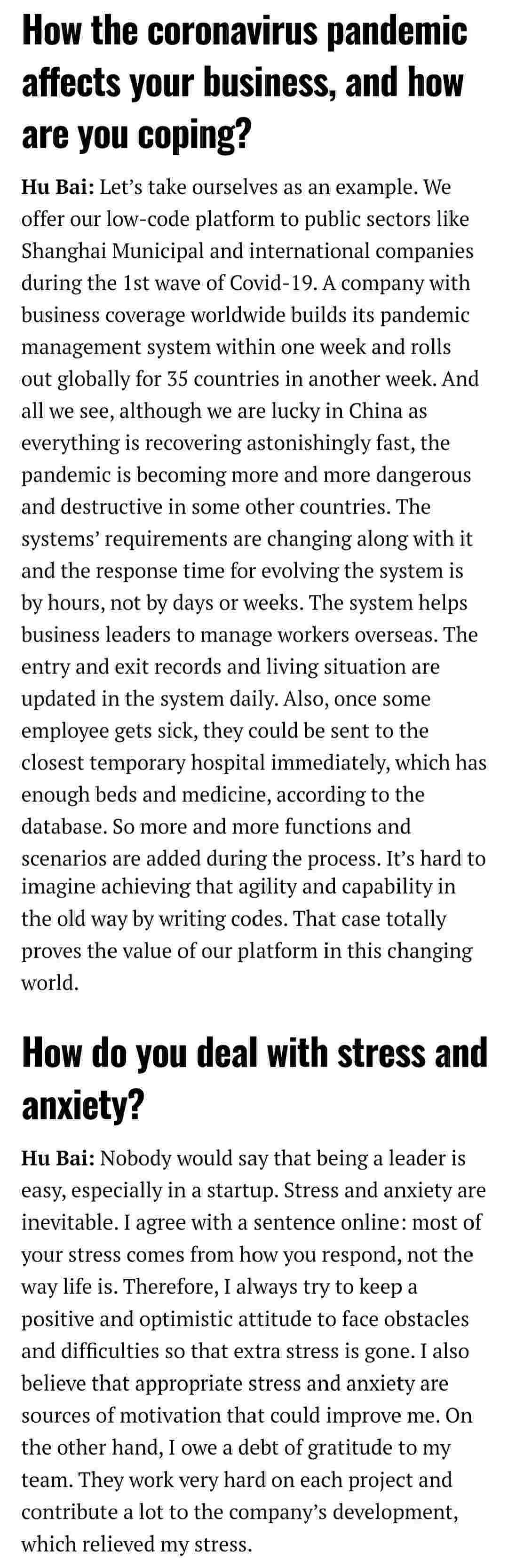 2021年年初,,,,爱湃斯科技CEO胡柏受邀接受法媒Startup.info的专访,,与Startup info的读者分享了自己的创业经历、、、以及低代码平台钱能钱包的创新之处。。。。
